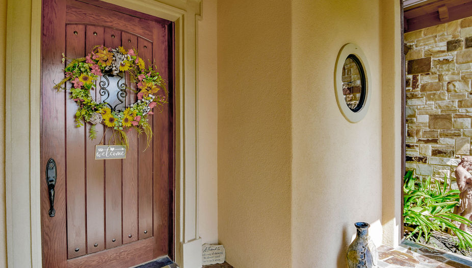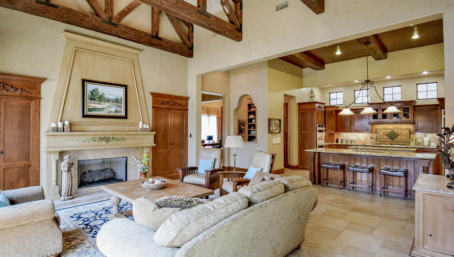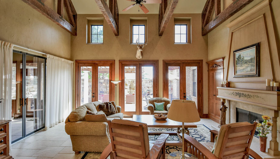 Luxury Tuscan Villa on a cul-de-sac in gated Harbor Lakes. Breathtaking stucco, & stone open concept Complemented by built-ins, hand hewn wood trusses & beams, high-end iron fixtures, encompassing windows, & Natural wood touches throughout. Home office w- floor to ceiling bookcase set off from living w-Showcased Fireplace, entertainment center, 90' courtyard & sunroom views & wet bar. Exquisite chefs eat-in kitchen featuring dual islands, expansive rich cabinetry, Built-in refrigerator & dishwasher, pot filler, dbl oven, walk-in pantry, custom organization, & set off from formal dining. Master suite w private courtyard access & tranquil bath w-dbl vanity, separate shower, deep jetted tub & walk-in closet. Upstairs bed w-luxury tiled ensuite bath. Mud room & dbl wood garage door w- storage. Relax in Enchanting Resort courtyard featuring wood pergola, stone fireplace, water feature, & finished with mood lighting. Seconds from dining, golf & lake, this stunning home is a must see!