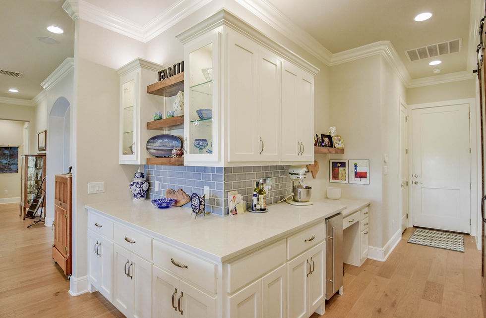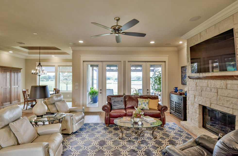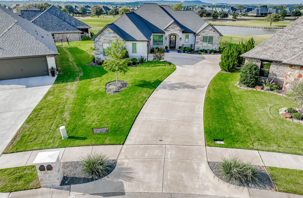 EXPANSIVE VIEWS FROM THIS PRIME GOLF COURSE LOCATION-Situated on a quiet cul-de-sac in prestigious Harbor Lakes, this sleek stone & gray brick contemporary home features open concept layout, luxury fixtures, Gas fireplace, wood flooring & encompassing windows -abundant natural light & Course views throughout. A stately iron front door leads to a Home office or 4th bedroom -Handcarved wood french doors. Living room -stone fireplace set across dining, & dream chef's eat-in kitchen boasting unending white cabinetry -custom organization, island, dbl oven, stainless appliances, Walk-in pantry, & finished off with showpiece modern tile backsplash. Relax in master w- seating area & elegant master bath w-dual vanities, Hollywood tub, granite counters, oversized tile shower, & huge walk-in closet conveniently located next to laundry room -wine cooler. Additional split bedrooms -ensuite bath for guests. Sip coffee under pergola in outdoor living space -the best views of #9 tee box, clubhouse, pond, & finished -beautiful drought tolerant landscaping. Garage w- ample storage, sink & separate golf cart garage. Just minutes from lake, dining & shopping this stunning property wont last long!