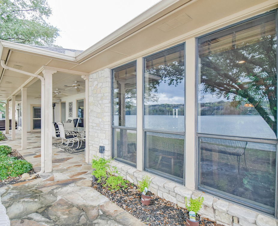 ISLAND OASIS ON MAIN BODY OF LAKE GRANBURY! This hidden gem offers nearly 300 feet of main body walk out waterfront. Situated on the end of quiet street & behind gated fence this primary home & guest house boasts 180 degree encompassing water views, hand scraped wood flooring, stone fireplace, granite & high end fixtures. Prepare meals in chef eat in kitchen complemented by abundant cabinetry, dbl oven, gas cooktop, granite counters , walk-in pantry & island, with 2 dining areas. Relax in Master with seating area, separate patio access & ensuite bath featuring double vanity, huge shower, soaking tub, & lrg walk-in closet. Separate guest house features living, kitchen, full bath, additional storage and double deep garage. Entertain guest on multi patio dream backyard -featuring grilling area, hot tub, firepit, & oversized boat dock - jetski & boat lift, island sink & storage. Easy access to shopping, dining and Hwy 377. Don't miss this jewel.